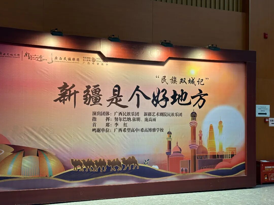 ![]() 3月23日晚,我校实验部的初三年级学生,在广西音乐厅聆听了一场名为“民族双城记”的民乐演奏,开启了人生第一次音乐会欣赏。 本次音乐会由乌鲁木齐的新疆艺术剧院民族乐团,和南宁的广西民族乐团联袂演奏,所以取名为“民族双城记——新疆是个好地方”。对于绝大多数前往观摩的同学来说,这是一场从未有过的体验,是人生第一次踏入音乐厅去现场欣赏他们印象中高大上的纯音乐会。 ![]() 广西希望高中是一所尤其重视全方位培养人才的学校,我们在应试上做加法,在取得好的学习成绩的基础上,也培养学生的综合素质,培养身心脑灵俱佳的、能打开自己、能面向未来的有趣灵魂。在学生的音乐素养培育上,我们一直给同学们介绍最好的音乐——我们曾经邀请台北室内交响乐团到学校演出,是为“请进来”,这次欣逢双城民乐联袂,我们带着孩子们去音乐厅,是为“走出去”。此次演出,我校也作为演出方的特别鸣谢单位,在许多方面都给予了乐团以大力支持。与高水准的乐团深度合作,这也是我们这所学校的基因决定应该要做的。
