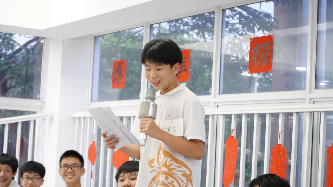 ![]() 在诗意盎然的氛围中,我们从赞赏走向鉴赏,从感受走向理解。“诗学互鉴”环节,见证了不同年级学生对诗词创作的独到见解。 初一同学的诗词创作之旅才刚刚开始,他们分享自己写诗填词的感受,以及在写作过程中逐渐积累的经验。而初二的同学对诗词已经有了更深入的理解,韦苏洁、古晖弘、蓝泽中先后发表了简明扼要的见解。其中,蓝泽中同学深入讲解诗词中“意象”、“意境”与“情感”之间的关系,并带领大家赏析黄炳鑫同学的作品《江城子》,从字词的选择到整体布局,他的分析细致入微,展现了他对诗词创作技巧的深刻理解。 ![]() - 蓝泽中 - 大家在写诗或赏析诗的时候,可以通过“意象、意境、情感”三步去分析一首诗。“意象”就是诗人用以表情达意的人、事、物;“意境”就是这些意象结合所创设出来的情境;而“情感”就是通过“意象”、“意境”的描绘和创设抒发的、显示出来的感情色彩。 我举一个例子,马致远的《天净沙•秋思》:“枯藤老树昏鸦,小桥流水人家。”其中,“枯藤”、“老树”、“昏鸦”这些意象,共同构成了一种萧瑟落寞的意境,而在这意境当中,也抒发了作者孤独落魄之感。方法大概如此,大家可以随便拿一首诗来分析。 在学习写诗填词的过程中,最基础的是掌握格律和押韵。熟悉这些之后,要再往上走,就要精进你的写法,丰富你的内容。我也看过部分同学的诗,他们的词汇、写作手法运用得非常好,但是读起来却总感觉少了什么,没有那么惊艳。我发现他们大多数的问题在于没有选好意象。如果你的一个意象写的是开心,一个是悲伤,那你的意境可能有矛盾,不自然,不和谐,诗词也就没蕴味了。意象与意境之间有很大的联系,只有将意象写好,你的意境才会深远,你的诗词才能让人眼前一亮。也才能准确表达出你想要表达的情感。 所以我在写诗填词的时候,我会先思考:我为什么写?我想抒发什么情感?主旨有了,写诗词就有方向了。而我所写的意象和意境,皆是为情感服务的,这样诗词的情感就深厚了。 大家平常可以多读诗词,去丰富积累诗词意象,相信你也能写出绝美的诗词的。 谢谢大家! ![]() ![]() 诗词创作要有感而发,可以借助意象、妙用形容词来达到抒情自然的效果。 ![]() ![]() 通过自己的经验,强调诗词创作中素材的积累、情感的真实表达、想象力的培养以及生活体验的重要性。 ![]() ![]() 通过自己的经历,强调了坚持、敢问和不断学习的重要性。 ![]() ![]() 分享自己的创作习惯:先想象情境,然后斟酌用词,协调平仄。要想写出好的诗词,阅读积累必不可少。 ![]() ![]() “在写诗时,我发现先构思一个完整的意境,再选用合适的词语,描写它的景象,可以让写诗事半功倍。” ![]() ![]() 分享诗词创作的一些关键步骤和技巧,强调创作前对主题和格律的规划,牢记并巧用入声字,以及在写作后对作品进行细致检查的重要性。 ![]() ![]() 分享了填词的整个过程,从灵感的捕捉,到最终作品的审阅和改进。强调情感表达和章法学习的重要性,并提倡反复审阅和征求他人意见来提升作品质量。 ![]() ![]() 自由问答环节高潮迭起,同学们积极提出自己在诗词创作中遇到的疑难,其他同学则欣然回应。蓝泽中同学尤其出色,他不仅思路清晰,而且能够迅速准确地为其他同学答疑解惑。